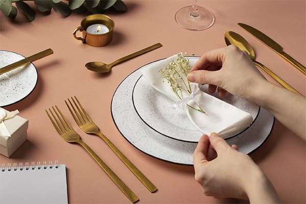 - Charger Plate (Service Plate): The large decorative plate beneath other plates; remains during the early courses.
